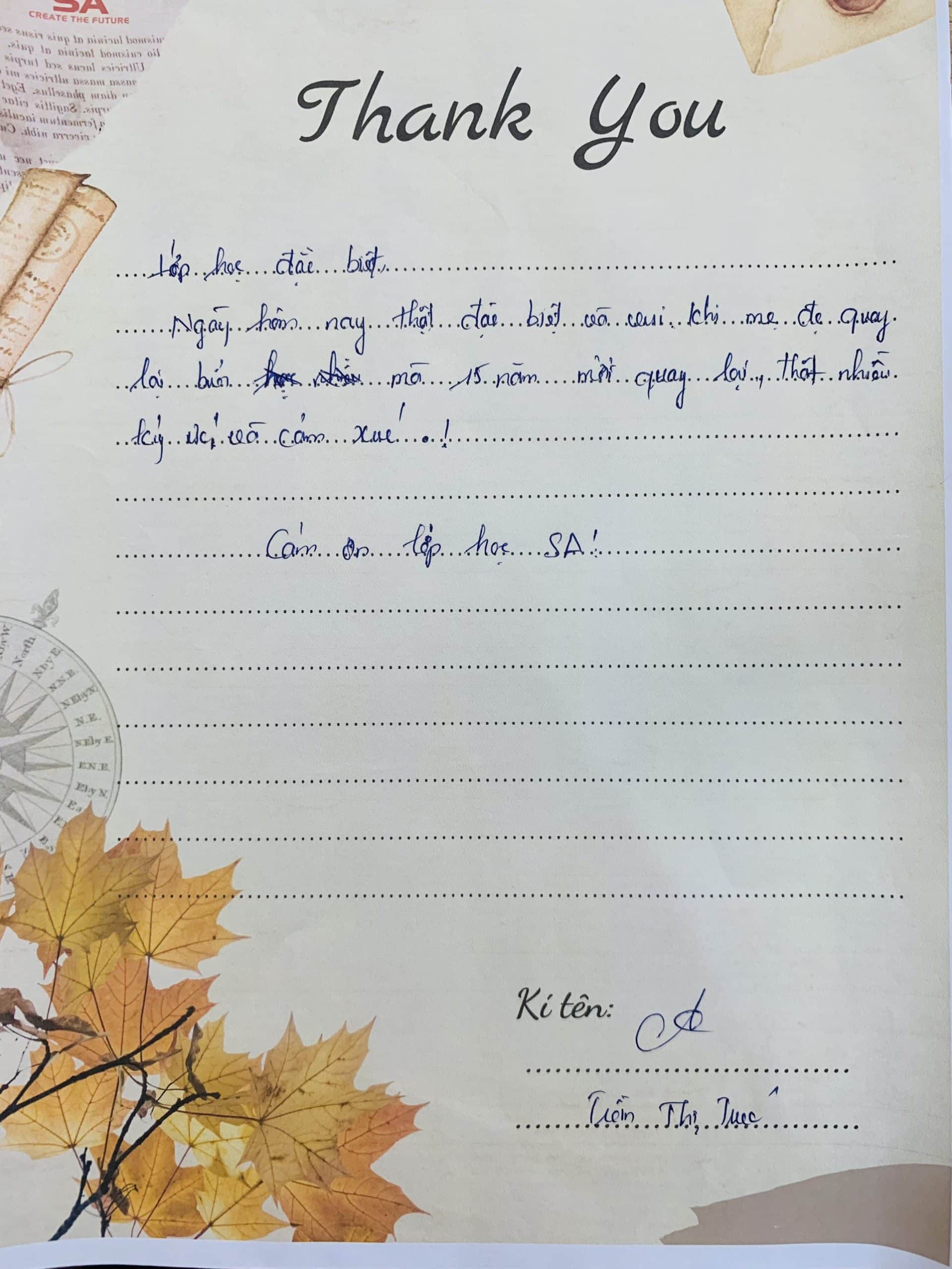 Đọc những dòng tâm thư trong “Bức thư tình” ấm áp, chân thành của Quý Phụ huynh dành cho các cô SA nói riêng và Anh Ngữ SA Vincom nói chung, chúng mình vô cùng xúc động, biết ơn và đầy tự hào.