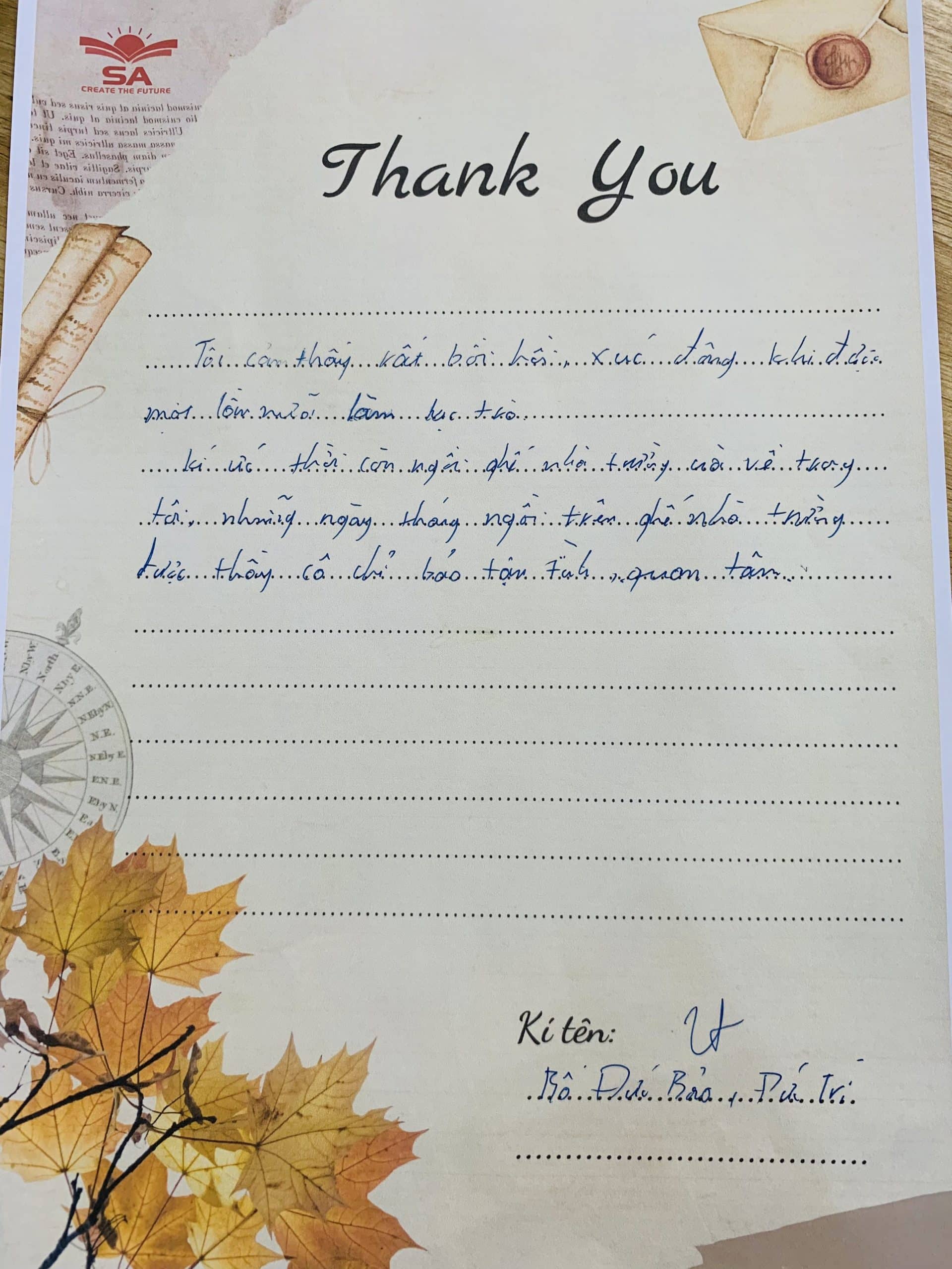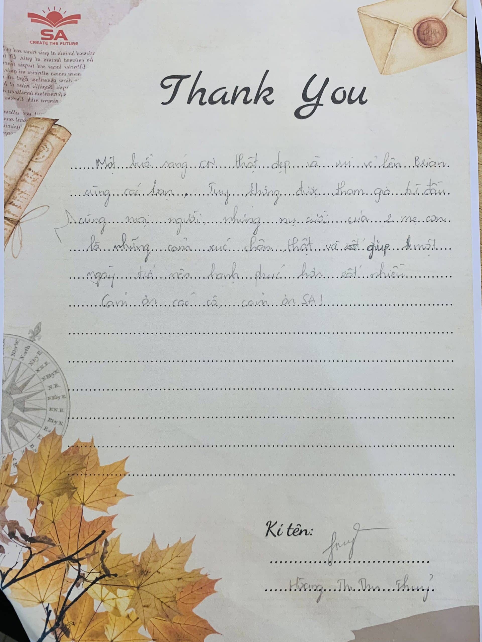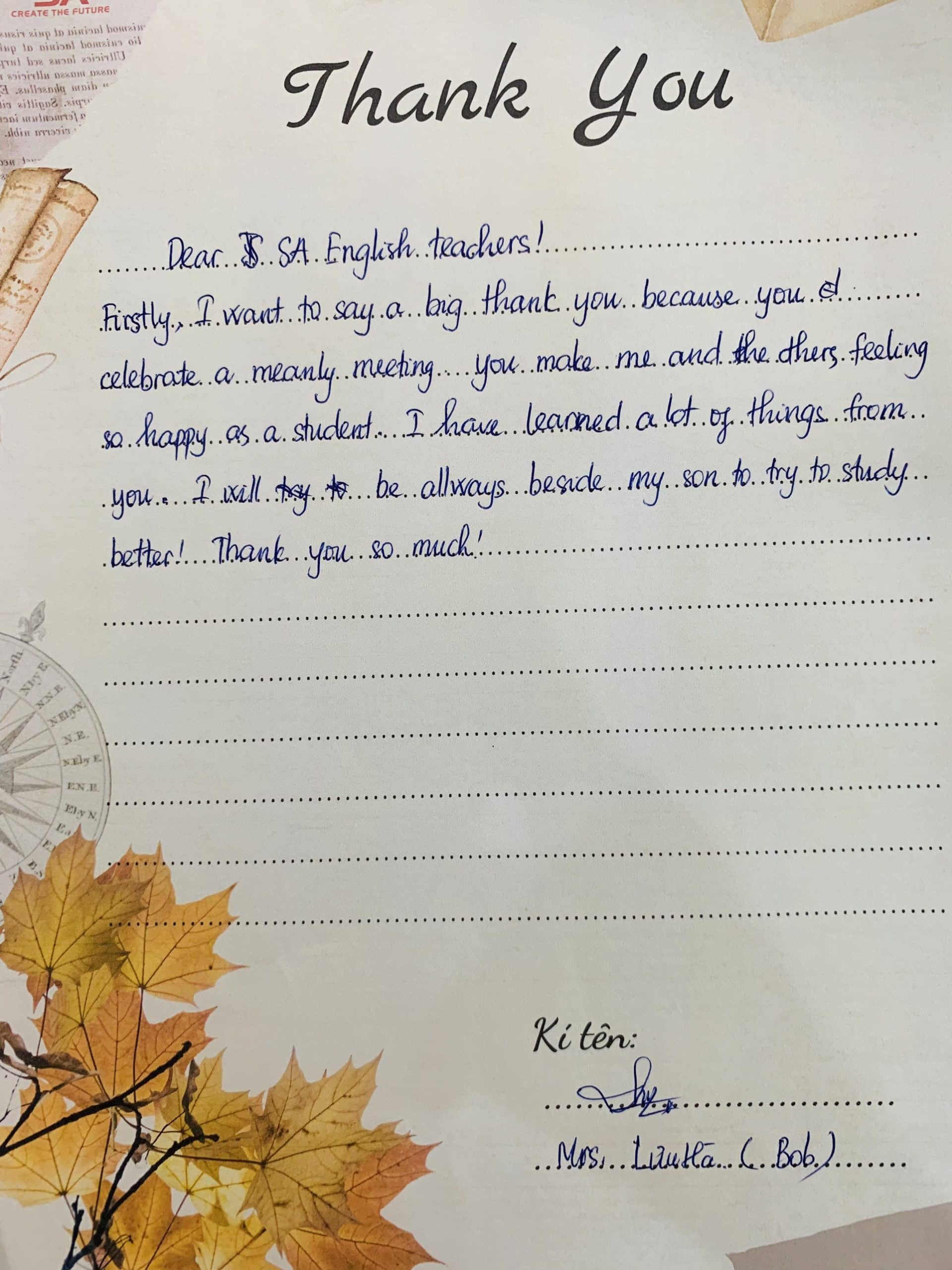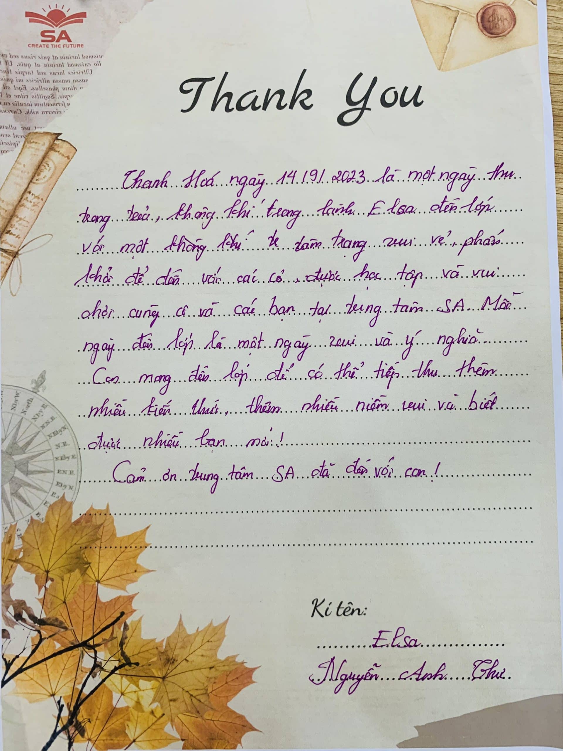 “Bức thư tình” này Anh Ngữ SA sẽ cất giữ mãi trong tim, trên hành trình chinh phục thế giới cùng các con, là thành tựu to lớn và vô giá nhất không gì mua được. Anh Ngữ SA trân quý vô cùng!