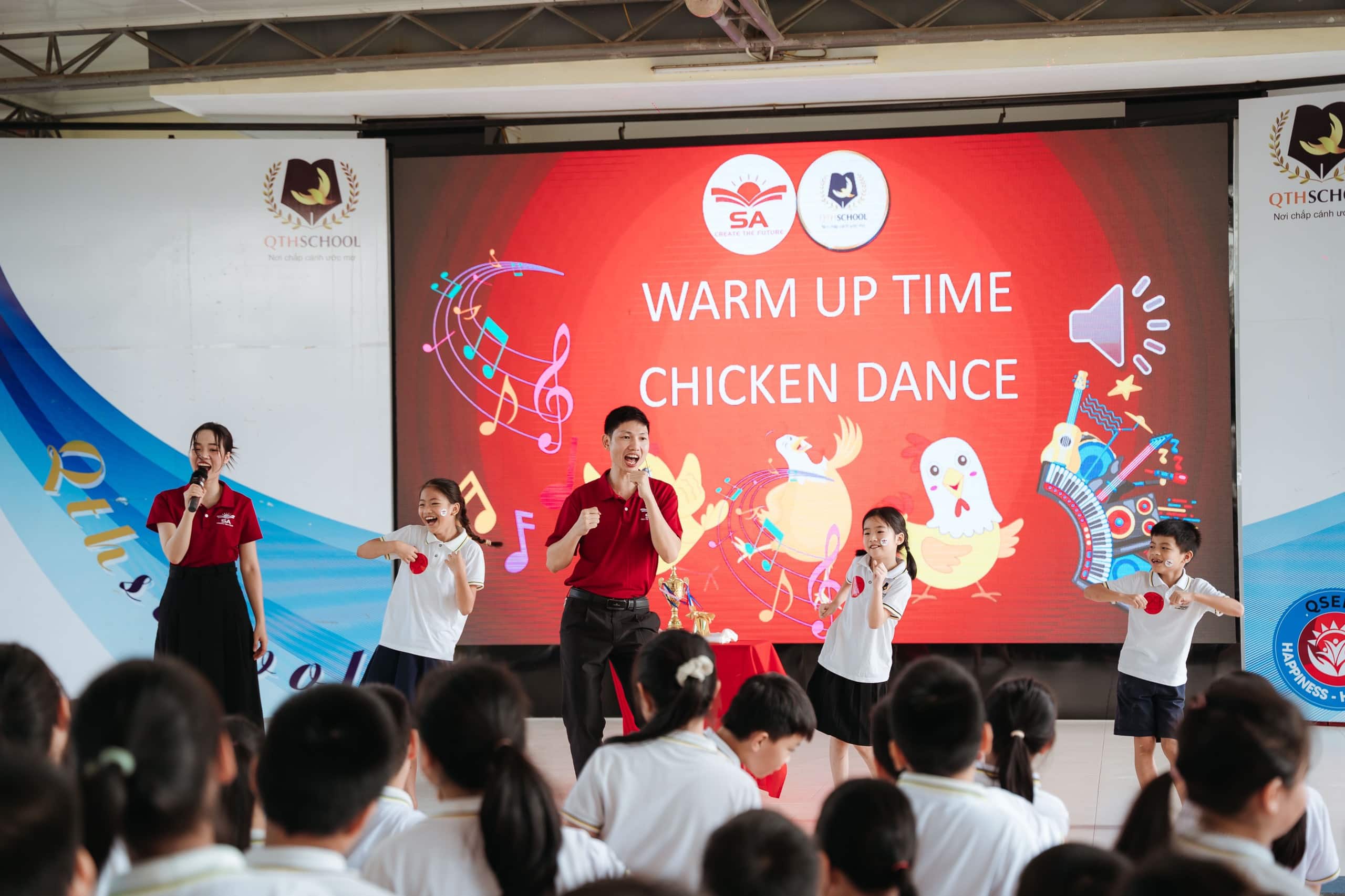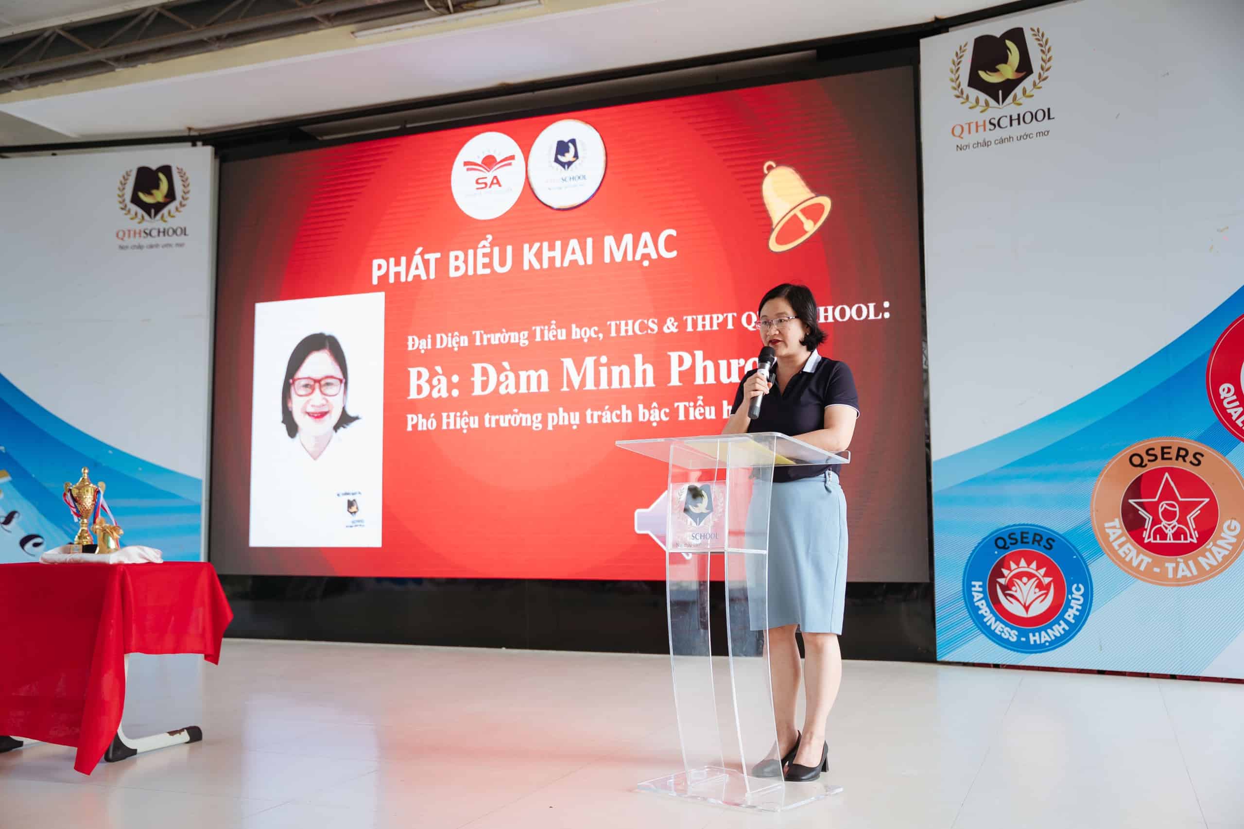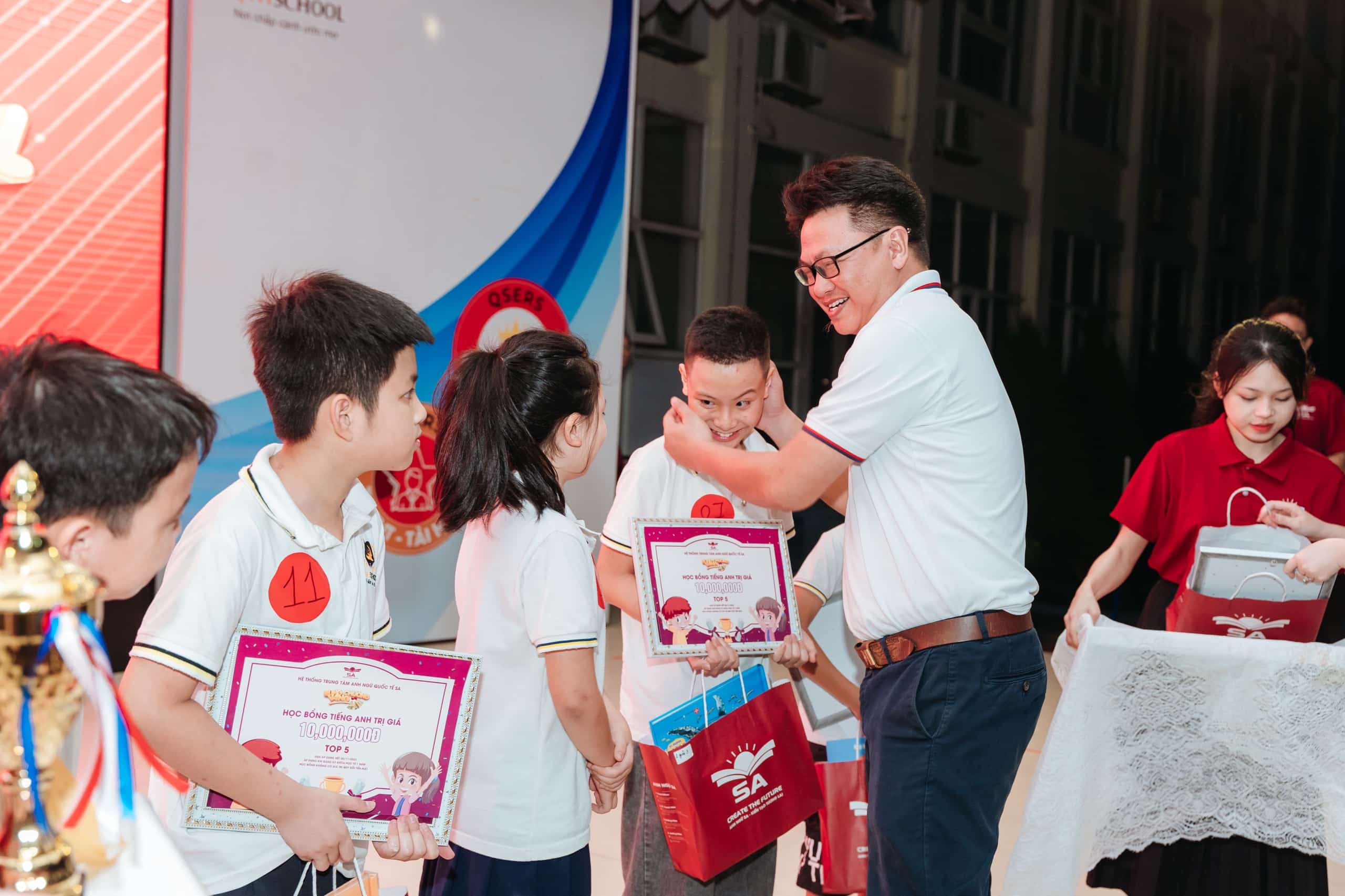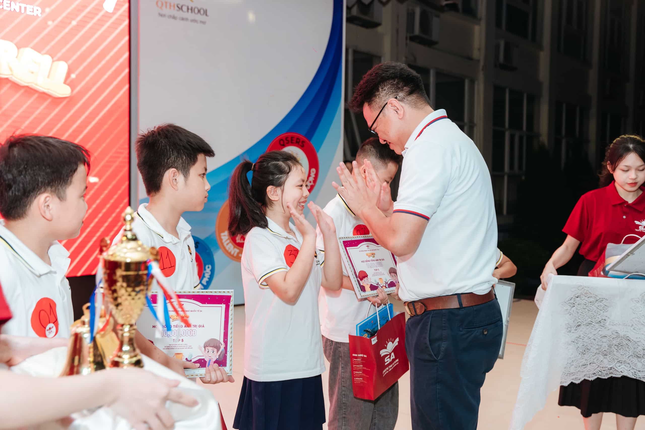 Tham dự chương trình có đại diện Ban Giám hiệu nhà trường, Tổ trưởng Bộ môn Tiếng Anh, đông đảo các thầy cô giáo, các Quý Phụ Huynh và đặc biệt là 100 em học sinh xuất sắc đến từ các khối 3, 4, 5 của Trường Tiểu học, THCS & THPT QTHSCHOOL.